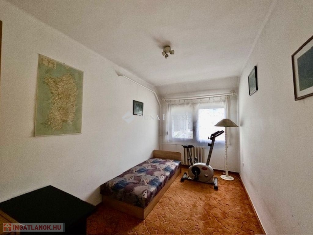 Eladó sorházi lakás Békéscsabán!Békéscsaba kertvárosi részén eladó egy téglából épült sorházi lakás, amely 1985-ben épült, tetejét cseréppel fedték be.Az ingatlan eredeti alapterülete 89 m², azonban a tetőtér utólagosan beépítésre került, így a lakótér összesen 120 m².Az ingatlan két szintes, valamint a beépített tetőtér plusz egy szintet képez.Alsó és felső szint kialakítása: nappali 3 hálószoba konyha kamra közlekedő háztartási helyiség 2 fürdőszobaTetőtér: Külön bejárattal rendelkezik melyet egy külső lépcsőn keresztül lehet megközelíteni.Kialakítása : nappali konyha hálószoba fürdőszoba WC-vel közlekedőA fűtésről gázkazán gondoskodik, radiátoros hőleadással.Az ablakok részben cserélve lettek.( alsó szinten )Az alsó szinten fa parketta burkolat míg a vizes helyiségekben kőburkolat, az emeleten padlószőnyeg található.Az ingatlan összközműves: vezetékes víz, villany, csatorna és gáz is be van vezetve.Jogilag rendezett, rövid határidővel birtokba vehető.Az ingatlan előtt fedett autóbeállási lehetőség található, amely az ingatlan saját tulajdonát képezi.A környék ellátottsága kiváló: 1,5 km-en belül iskola, óvoda és bevásárlási lehetőségek egyaránt megtalálhatók.A környezet csendes, nyugodt, ideális családok számára.Amennyiben hirdetésem felkeltette érdeklődését, várom megtisztelő hívását.