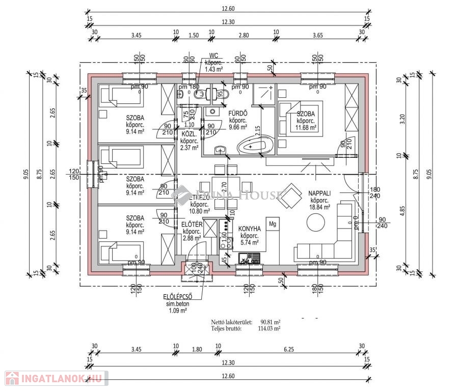 ÚJ ÉPÍTÉSŰ CSALÁDI HÁZ KULCSRAKÉSZEN Ceglédbercelen, Iskola utcában.Eladó egy 90m2-es családi ház, nappali + 4 szoba, nagy méretű, 1122 m²-es telken - az ár a telekkel együtt értendő!Ár: kulcsrakészen, terasz, konyhabútor és lámpatestek nélkülKiemelt előnyök:-ELŐFINANSZÍROZÁS lehetősége csak az elkészült ütemek után kell fizetni.-ÁRGARANCIA és kötbér vállalás a kivitelezőtől-Energiahatékony fűtés: BOSCH 3400 prémium levegő-víz hőszivattyú, vizes padlófűtéssel-3 rétegű prémium nyílászárók, választható belső burkolatok és ajtókMűszaki tartalom:Teherhordó falazat: Wienerberger Porotherm 30 N+FHomlokzati hőszigetelés: 15 cmTetőhéjazat választható: Leier Toscana tetőcserép választható színbenKülső nyílászárók: 3 réteg üvegezésű, kívül antracit, belül fehér prémium Gealan S8000 külső nyílászárók, 36 mm-es üvegezéssel + antracit, alumínium redőnyök + antracit műkő párkányVálaszfal: Wienerberger Porotherm 10 tégla válaszfalBejárati ajtó választható: Colorplast standard betéttelTeraszajtó: Dupla szárnyasBeltéri ajtó: Borovi Szicília (dekorfóliás) választható színbenHidegburkolat választható: 6.500 Ft / m2Melegburkolat választható: 6.000 Ft / m2Szaniterek választható: (kád, zuhanykabin, csaptelep stb.) 460.000Ft-igGépészet: Bosch 3400 levegő-víz hőszivattyú vizes padlófűtésselAz ár kulcsrakész állapotban történő átadással értendő, konyhabútor és lámpatestek nélkül!Közművek:Gáz: nincsVillany: ingatlanbanCsatorna: ingatlanbanVíz: ingatlanban