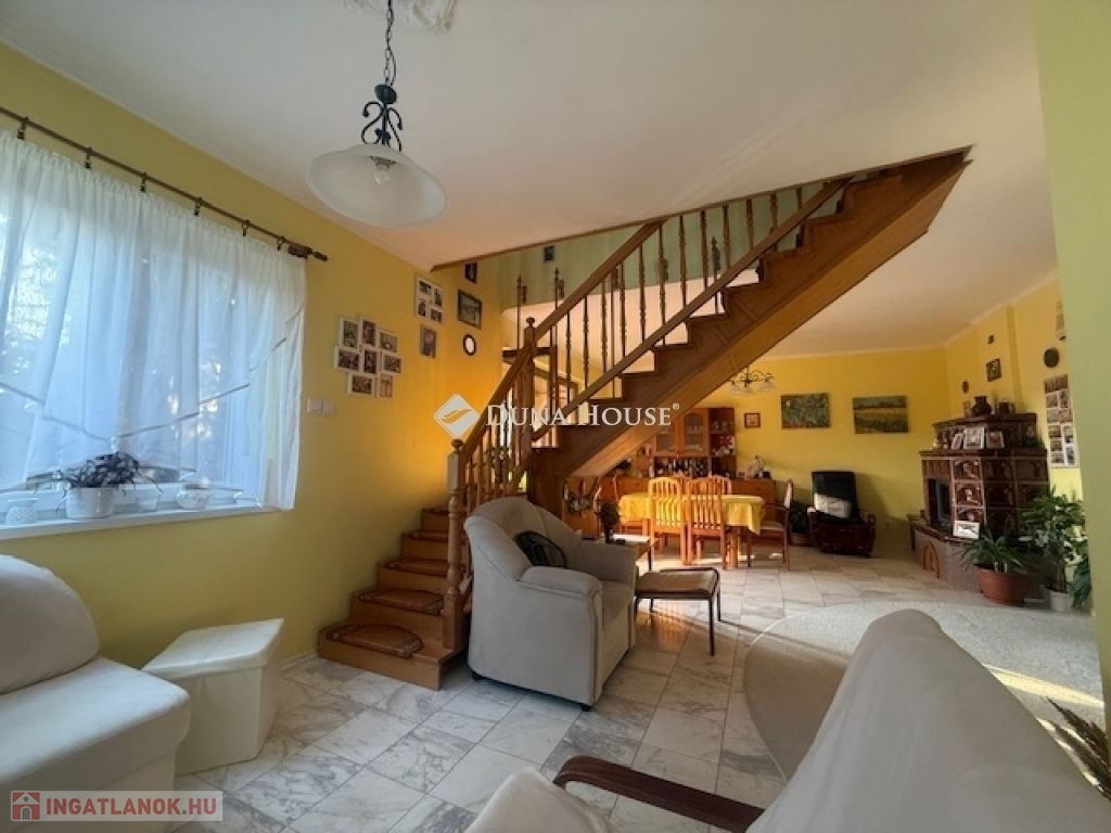 Hernádon, Budapest határától mindössze 30 km-re eladó egy 134 m²-es, kétszintes családi ház 1438 m²-es telken!Megvételre kínálok Hernád csendes, rendezett utcájában egy masszív szerkezetű, kétszintes családi házat. Az ingatlan 134 m² lakótérrel rendelkezik, alatta pedig egy 64 m²-es száraz pince húzódik. A házhoz két beállásos garázs tartozik, a 1438 m²-es telken pedig több termő gyümölcsfa, bogyós gyümölcsök és kiépített öntözőrendszer található.Az ingatlan elrendezéseAz alsó szinten található:konyhakamranappaliétkezőfürdőszobakülön WCA nappaliból egy fa lépcsőn keresztül jutunk fel az emeletre, ahol kialakításra került:egy tágas nappali rész3 külön nyíló hálószobazuhanyzós fürdőszobaFűtés és műszaki tartalomAz ingatlanban háromféle fűtési lehetőség biztosított:gázkazán padlófűtésselrendszerre kötött vegyes tüzelésű kazánhangulatos cserépkályha a nappalibanA komfortot növeli:klíma az alsó nappalibanközponti klímarendszer a tetőtérbenközponti porszívórendszer, amely különösen előnyös allergiások számáraMűszaki állapotA ház betonalapra épült, 38-as téglafalazattal, stabil statikai állapotban.A nyílászárókat cserélték, redőnnyel és szúnyoghálóval felszereltek.A villanyhálózat rézvezetékekből készült.KörnyezetA kert gondozott, virágokkal, gyümölcsfákkal és bogyós növényekkel beültetettA településen iskola, óvoda, bölcsőde és bevásárlási lehetőségek is megtalálhatók.A környék nyugodt, rendezett, barátságos szomszédokkal.Kiváló választás nagyobb családok számára, akik nyugodt, családias környezetben szeretnének élni, mégis közel Budapesthez.Amennyiben hirdetésem felkeltette érdeklődését keressen bizalommal.