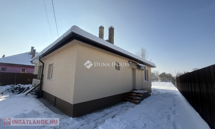 Eladó frissen felújított ikerházfél Pestmegyén belül Örkény településen !Az ingatlan 47 nm fűtött lakótérrel rendelkezik. Kialakítása 2 szobakonyha + étkezőfürdőszoba + wc egy helységben ( épített zuhannyal )Az épület folytatásában egy jó állapotban levő tárolásra alkalmas melléképület találhatóA felújítás során a következő munkálatok lettek elvégezve. - 5 cm homlokzati hőszigetelés, új színezés- Új tetőszerkezet: lécezés, cserépfedés- Új ereszcsatorna- Új villanyhálózat- Új műanyag nyílászárók- Új beltéri ajtók- Új hideg- és melegburkolatok- Új kerítésFűtés és közművek:- Fűtés: 2 db hűtő-fűtő klíma és 1 db elektromos fűtőpanel (energia takarékos )- Melegvíz: villanybojler- Közművek: víz, villany, csatorna bevezetve, gáz az utcábanAz ingatlan tehermentes, jogilag rendezett, önálló helyrajzi számmal rendelkezikKözlekedés szempontjából jól megközelíthető helyen található az ingatlan . A vasútállomás pár perces sétával elérhető. Boltok , iskola , óvoda szintén a közelben . Amennyiben hirdetésem felkeltette érdeklődését , várom megtisztelő hívását.