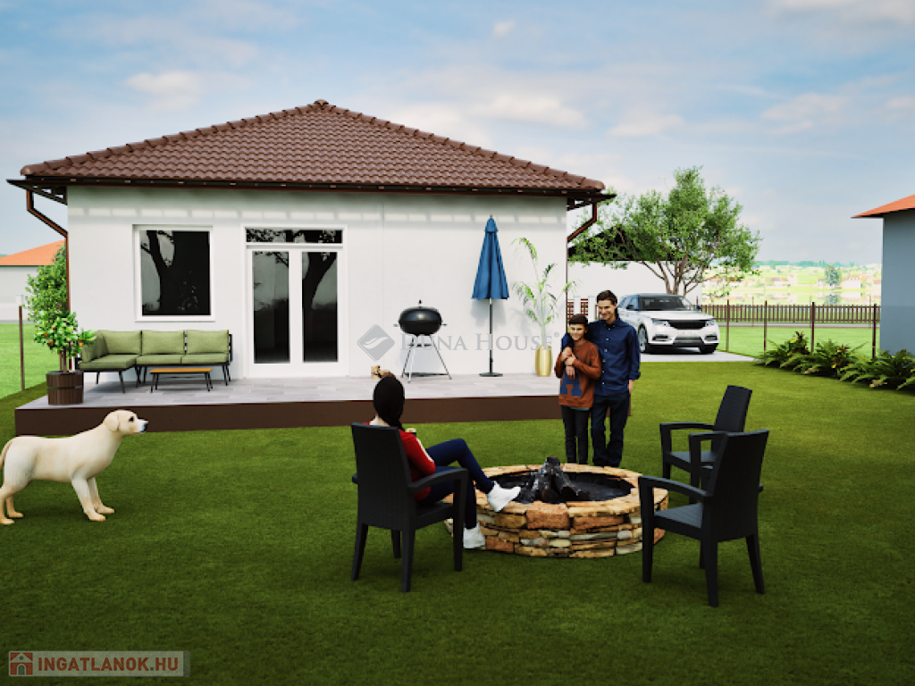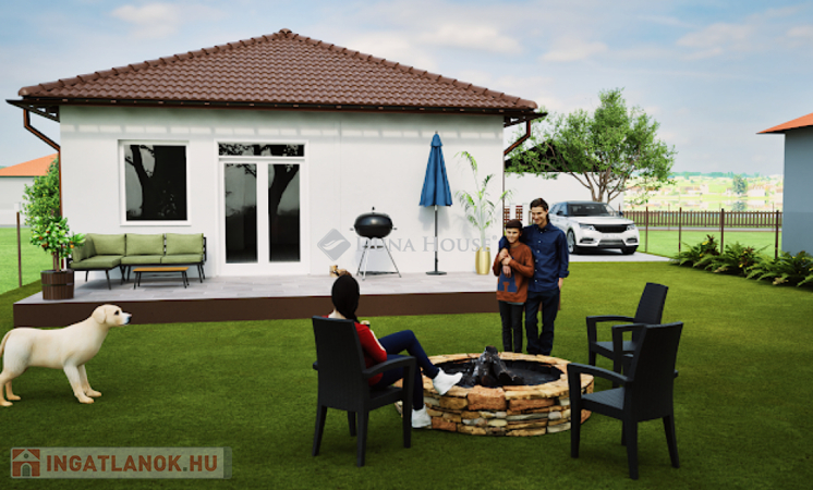 Kialakítása: 2 szoba, tágas amerikai nappali konyha, háztartási helyiség, előtér, közlekedő, fürdőszoba, külön wc, gardrób, nyitott terasz.