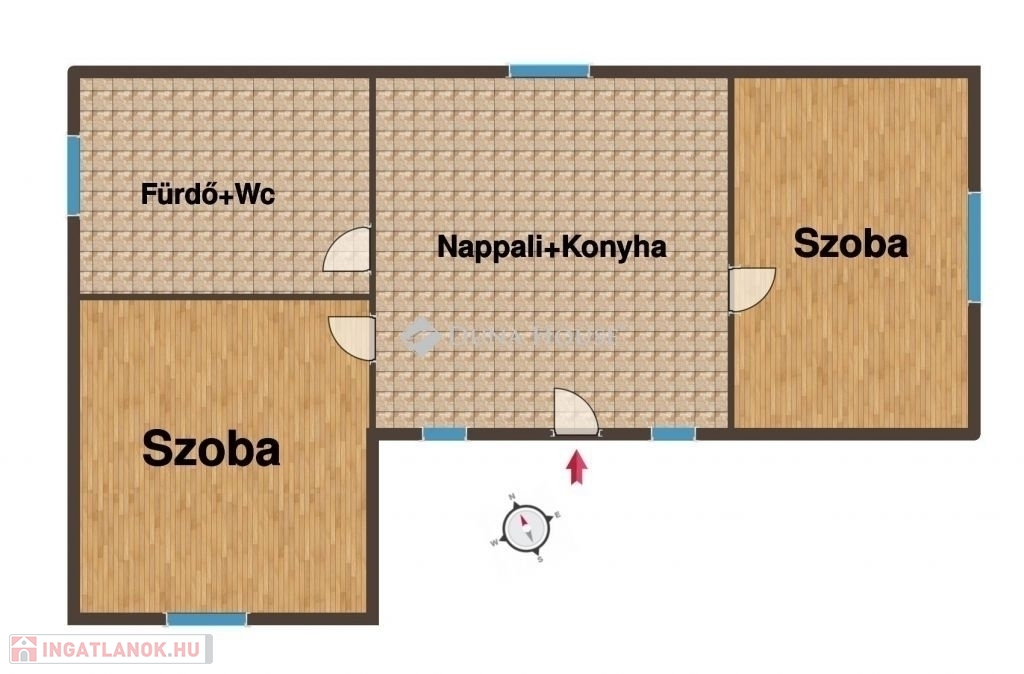 A helyiségek tekintetében kialakításra került: 2 szoba ,nappali+konyha , Fürdő+Wc.