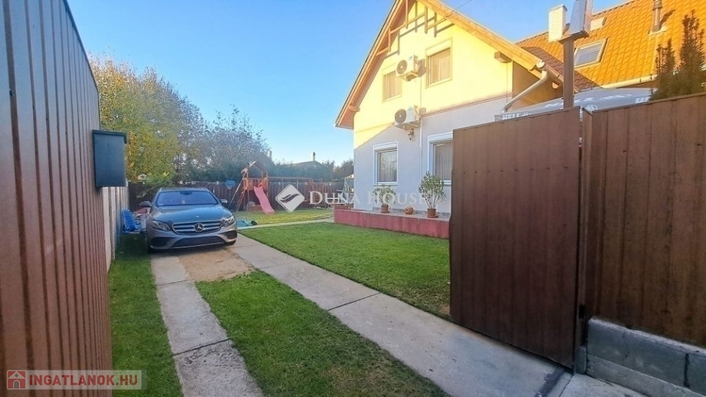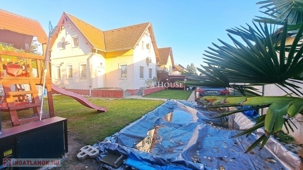 Megvételre kínálok Üllőn egy Nappali+ 4 szobás, Duplakomfortos Ikerházat rendezett szép udvarral és Medencével, csendes környékenAz ingatlan főbb jellemzői: - Építés éve: 2007- Szerkezete: Tégla- Szigetelés: 10 cm- Hasznos alapterület: 122 nm + 18 nm terasz + - Telek mérete: 470 nm , Összközműves, szorgalmi útról megközelíthető- Fűtése: Turbo Gázkazán, Padlófűtés mindenhol, a szobákban pedig radiátorok vannak.- Földszinten (Nappaliban) 5 kw-os Hűtő-fűtő klíma- Emeleten ( 3 db szobánként 1 db) 3,5 kw-os Hűtő-fűtő klíma- Műanyag nyílászárók szúnyoghálóval és redőnnyelElrendezése: - Földszint: Nappali, Szoba, Előszoba, Étkező, Konyha, Fürdőszoba, Wc, Kamra, Terasz - Emelet: 3 db Szoba, Fürdőszoba+ Wc, KözlekedőA ház elhelyezkedése és kialakítása kiválóan alkalmas nagycsaládosok számára is.Jól átgondolt és kivitelezett, tágas életterek állnak rendelkezésre, szintenként 1-1 Fürdőszobával és illemhelységgel.Elektromos kapun jutunk be az udvarra, ami applikáción keresztül és távirányítóval is vezérelhető, nyitható.Az udvaron található:- 7mx3,5m-es gépesített medence, amely 1,5 m mély, 9 kw-os hűtő-fűtő hőszivattyúval biztosítja a kellemes hőmérsékletet, a hangulatot pedig led világítás biztosítja- játszótér- sütügető- 3x5 méteres mobilgarázsA vételár részét képezi:- mobilgarázs- az emeleten lévő gardróbszekrény a közlekedőben- az emeleti szobában található fél éve vásárolt franciaágy Ez az ingatlan valóban különleges és tökéletes választás mindazok számára, Akik jól átgondolt és felszerelt, tágas, világos tereket keresnek.Amennyiben az ingatlan felkeltette az érdeklődését keressen bizalommal a hét bármely napján.Jöjjön el, nézzük meg együtt.