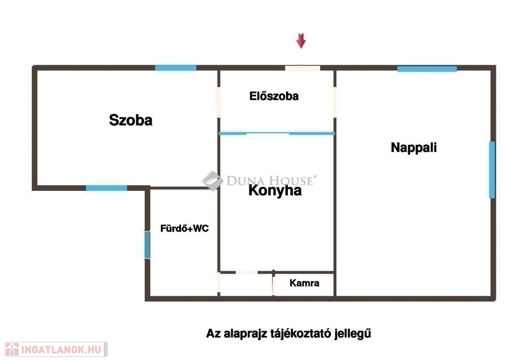A lakás elrendezése kitűnő, a szobák különnyílóak ( 12 illetve 18 nm ) , tágas konyha- étkező és kamra tartozik hozzá.
