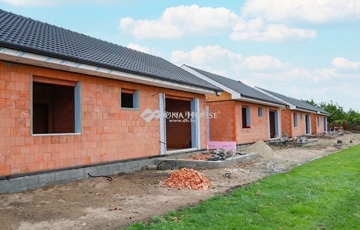 Eladásra kínálunk Cegléd, Nyíl közben egy 65 m²-es, új építésű családi házat, amely hőszivattyúval, fedett gépkocsibeállóval és prémium műszaki tartalommal rendelkezik.A 400 m²-es telek a vételár részét képezi, és az osztatlan közös tulajdonhoz, ügyvédi használati megosztás is tartozik.A teljes, 2940 m²-es területen 4db sorházi jellegű családi ház épül. Minden ingatlanhoz saját telekrész tartozik. (400 m²)Továbbá közös elektromos kapu, fedett beálló, valamint egy parkolóhely is.A kivitelezés már megkezdődött, a várható átadás pedig 2026. február.A kivitelező KÖTBÉR-GARANCIÁT IS VÁLLAL!A projekt kivitelezői ELŐFINANSZÍROZÁSSAL is megvásárolható (nem kell előre fizetni), tehát mindig az elkészült, átadott ütem után kell fizetni, illetve a kivitelező szerződésben vállalja, hogy ÁR GARANCIÁT vállal az építményre.A családi ház nettó alapterülete 65 m2, amely tartalmaz:3 szobát (amerikai konyha-nappali-étkező + 2 hálószoba);1 fürdőszobátFedett gépkocsi beállótés egy előszobát.Műszaki tartalom:Teherhordó falazat: Wienerberger Porotherm Profi 30 X-Therm téglaHomlokzati hőszigetelés: 15 cmTetőhéjazat választható: Leier Toscana tetőcserép választható színbenKülső nyílászárók: 3 réteg üvegezésű, kívül antracit, belül fehér prémium Gealan S8000 külső nyílászárók, 36 mm-es üvegezéssel + antracit, alumínium redőnyök + antracit műkő párkányVálaszfal: Wienerberger Porotherm 10 tégla válaszfalBejárati ajtó választható: Colorplast standard betéttelTeraszajtó: Dupla szárnyasBeltéri ajtó: Borovi Szicília (dekorfóliás) választható színbenGépészet: Bosch 3400 levegő-víz hőszivattyú vizes padlófűtésselAz ár kulcsrakész állapotban történő átadással értendő, konyhabútor és lámpatestek nélkül!Közművek:Gáz: nincsVillany: ingatlanbanCsatorna: derítő kerül kiépítésreVíz: ingatlanbanAjánlom mindazoknak, akik Cegléd csendes, új-építésű környezetben szeretnének élni.